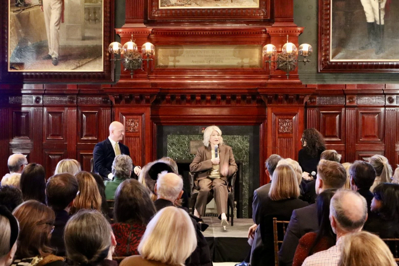 Stewart spoke warmly of her friendship with Jenrette, recalling his generosity, intellectual curiosity, and legendary love of hosting. Homes, she and Prosky agreed, are shaped as much by gatherings and hospitality as by architecture or furnishings. Prosky recounted Jenrette’s famously audacious dinner party—chartering a private train from Grand Central to Edgewater in the Hudson Valley for an evening of cocktails, dancing, and conversation—as an expression of how historic places come alive through shared experience.